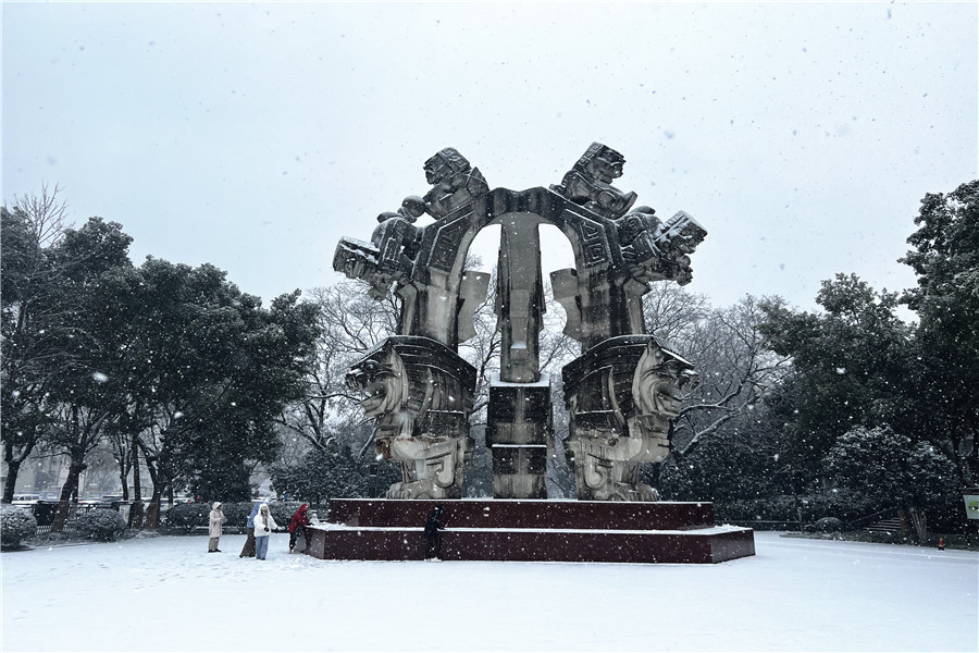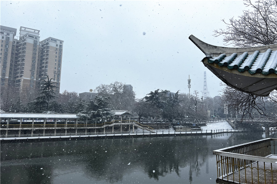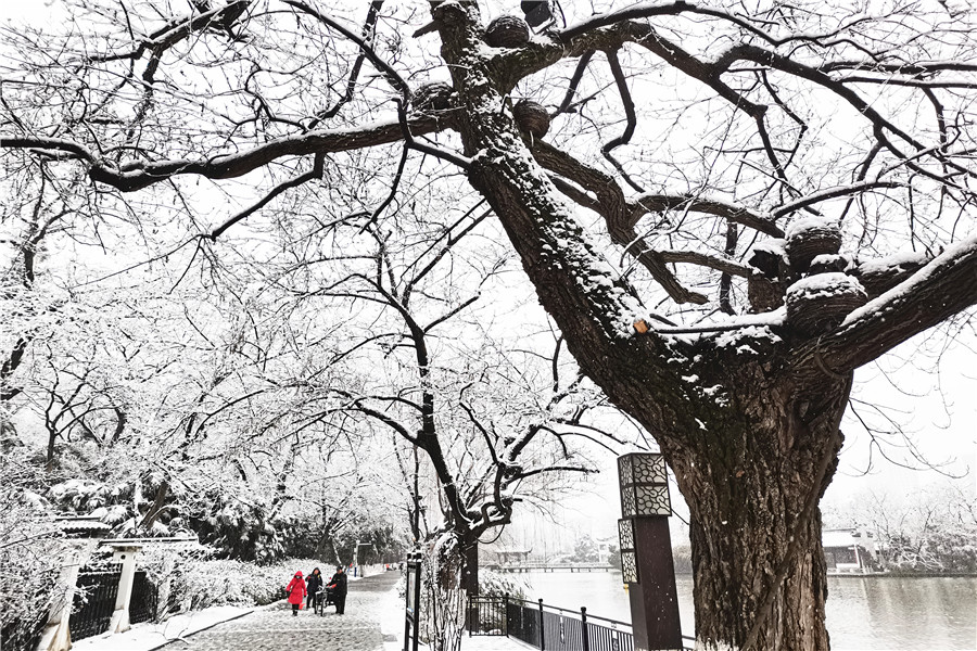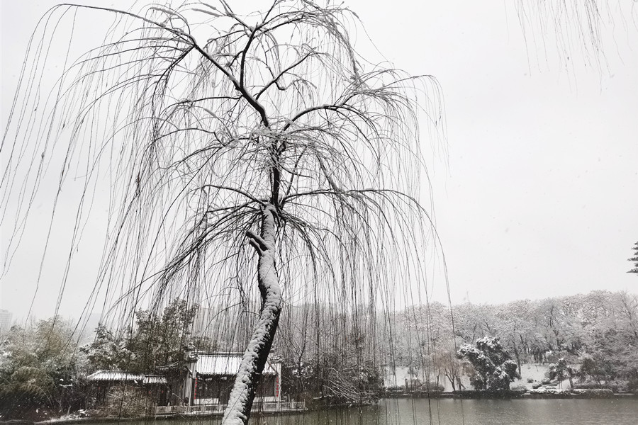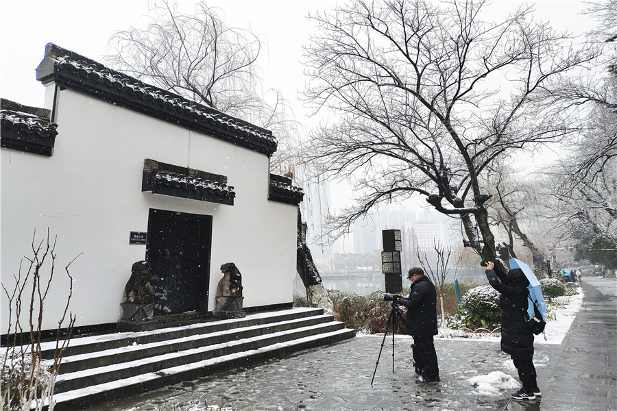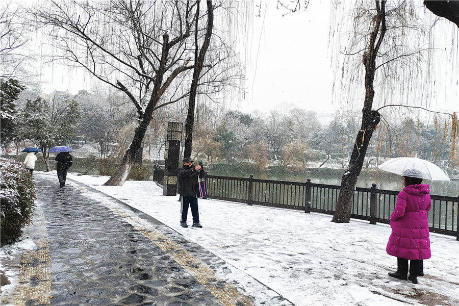 本網訊 2月4日,正值立春節氣,合肥飄起了紛紛揚揚的雪花,處處銀裝素裹。一些市民冒著嚴寒走出家門,近距離欣賞美麗的雪景。