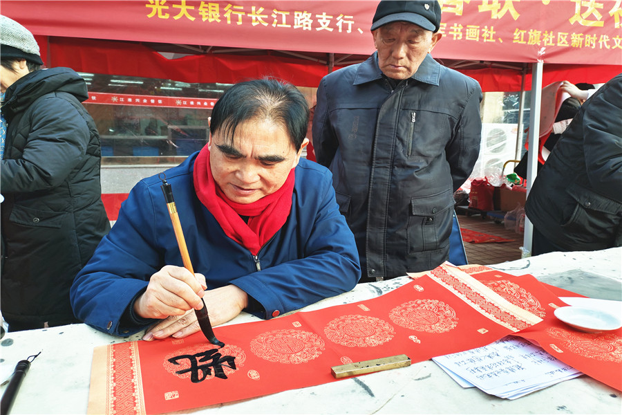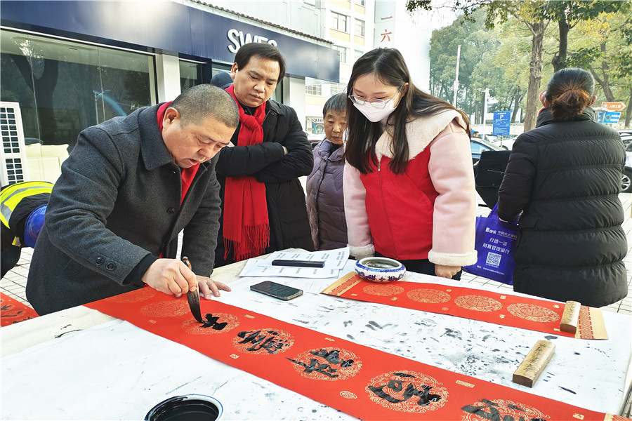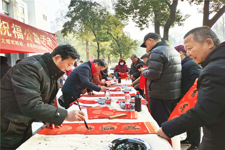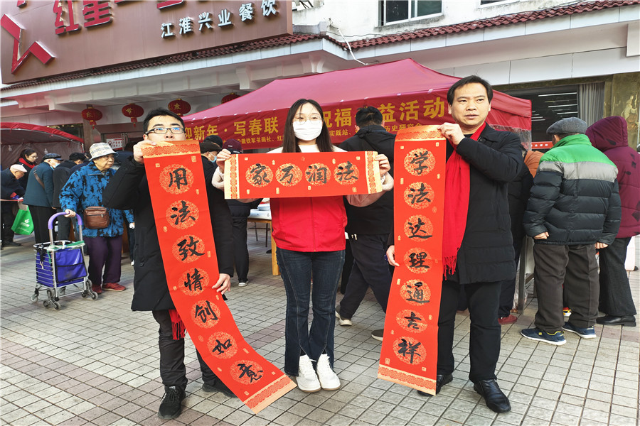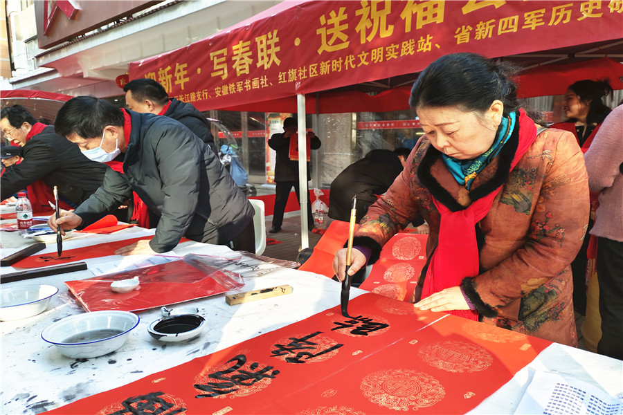 本網(wǎng)訊(記者 史洪芳)1月30日,安徽省新四軍歷史研究會、紅旗社區(qū)新時代文明實踐站、安徽鐵軍書畫社等單位共同舉辦了“迎新年·寫春聯(lián)·送祝福”公益活動,邀請多位書法家現(xiàn)場寫春聯(lián)、福字,為廣大市民送上新春祝福。