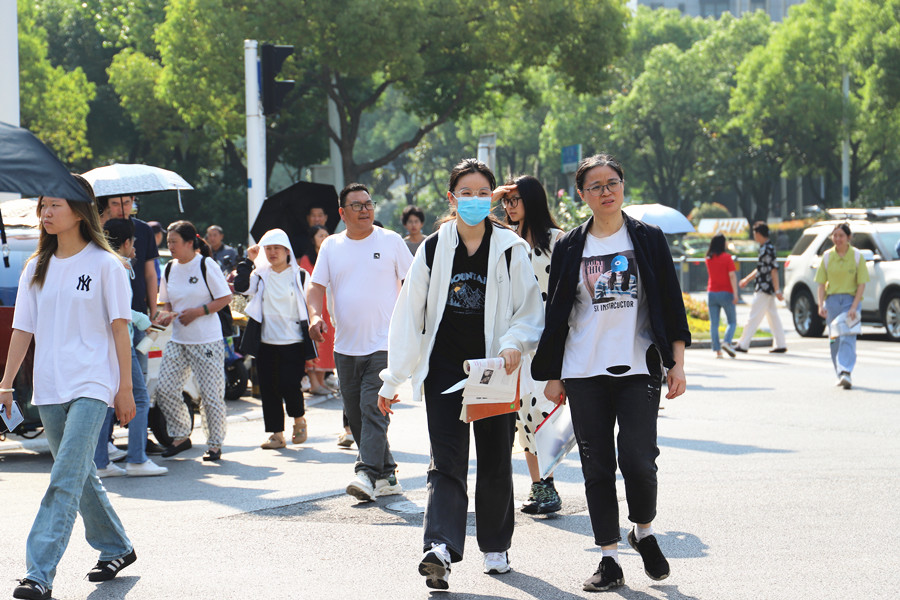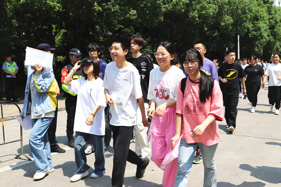 合肥八中考點,考生們走出考場。