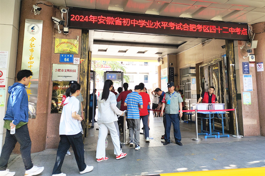 本網(wǎng)訊(記者 史洪芳)6月14日,安徽省2024年初中學(xué)業(yè)水平考試正式拉開帷幕,全省73.72萬考生奔赴考場。合肥市多部門聯(lián)動,在考點周邊設(shè)置休息區(qū)、志愿服務(wù)臺,為考生及家長提供貼心服務(wù)和免費物資。
