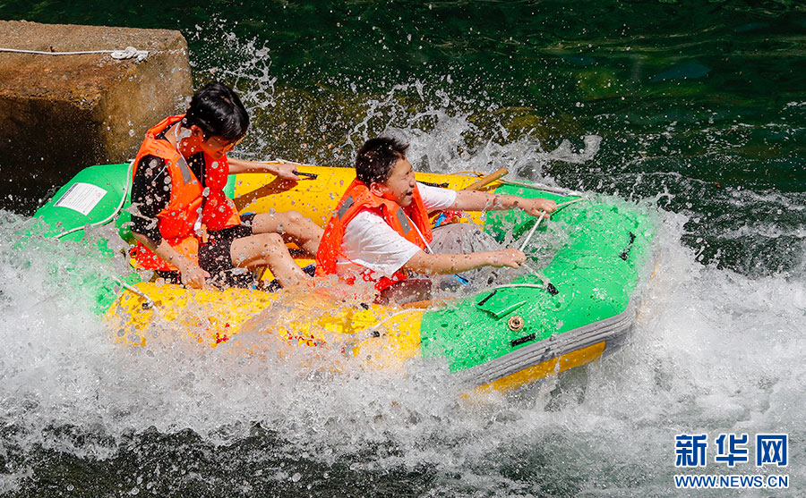 當(dāng)日是小暑節(jié)氣,眾多游客來到安徽省黃山市休寧縣夾溪河體驗漂流,親水玩耍,暢享清涼。新華網(wǎng)發(fā)(施亞磊 攝)