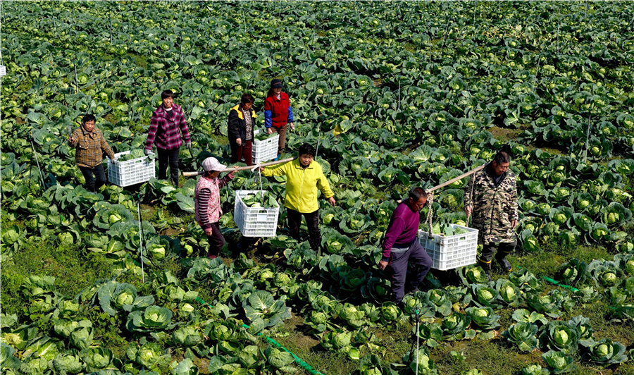 10月22日,在亳州市利辛縣舊城鎮陸暗樓村蔬菜種植基地,農民在采收包菜供應市場。近年來,亳州市大力發展包菜、娃娃菜等規模化種植,讓群眾在家門口實現就業增收。本報通訊員 劉勤利 楊晴 攝